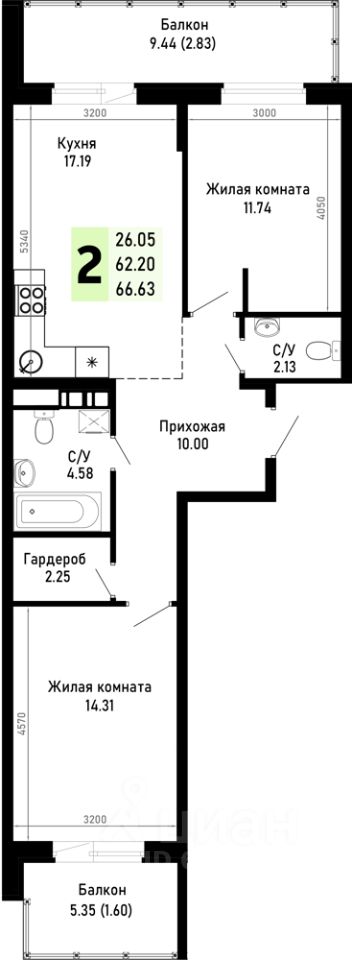 Продаётся 2-комнатная квартира в строящемся доме (квартал 9.2 литер 3), срок сдачи: IV-кв. 2026, общей площадью 66.63 кв.м., на 4 этаже. Новый жилой комплекс по ул. Николая Лебедева от застройщика "ССК"