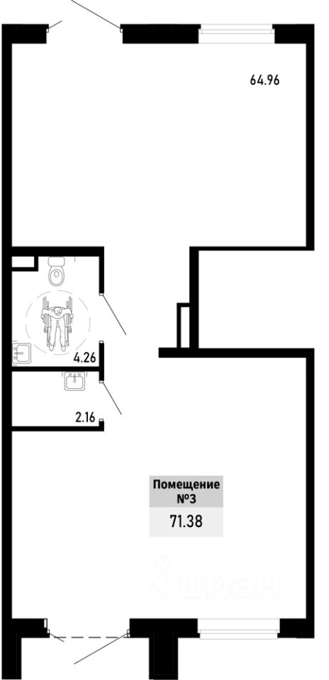 Продаётся 1-комнатная квартира в строящемся доме (квартал 9.2 литер 3), срок сдачи: IV-кв. 2026, общей площадью 71.38 кв.м., на 1 этаже. Новый жилой комплекс по ул. Николая Лебедева от застройщика "ССК"