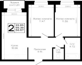 Продаётся 2-комнатная квартира в строящемся доме (квартал 7.1 литер 2), срок сдачи: IV-кв. 2026, общей площадью 56.57 кв.м., на 1 этаже. Новый жилой комплекс по ул. Николая Лебедева от застройщика "ССК"