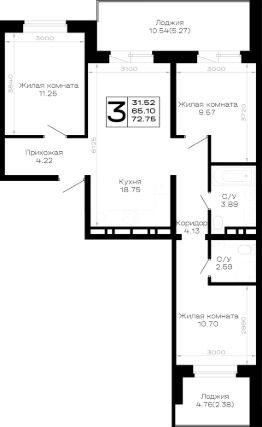 Продаётся 3-комнатная квартира в строящемся доме (квартал 7.1 литер 3), срок сдачи: IV-кв. 2026, общей площадью 72.75 кв.м., на 2 этаже. Новый жилой комплекс по ул. Николая Лебедева от застройщика "ССК"