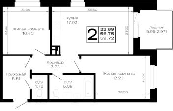 Продаётся 2-комнатная квартира в строящемся доме (квартал 7.2 литер 2), срок сдачи: IV-кв. 2026, общей площадью 59.72 кв.м., на 3 этаже. Новый жилой комплекс по ул. Николая Лебедева от застройщика "ССК"