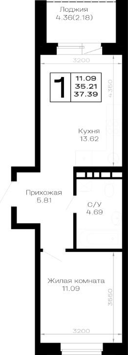 Продаётся 1-комнатная квартира в строящемся доме (квартал 7.2 литер 3), срок сдачи: IV-кв. 2026, общей площадью 37.39 кв.м., на 4 этаже. Новый жилой комплекс по ул. Николая Лебедева от застройщика "ССК"