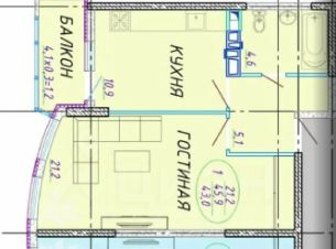 Жилая площадь составляет 20.2 квадратных метров, кухня занимает 10 квадратных метров, что создает достаточно пространства для комфортного проживания.