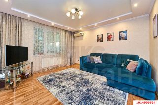 Фактическая площадь квартиры больше 100кв.м. В квартире оборудована просторная гардеробная, в спальне встроенный шкаф-купе, двери деревянные, пол к комнатах и на лоджии -ламинат, в кухне керамогранит с подогревом. Кухня полностью оборудована бытовой техникой. Мебель частично тоже остается. Потолки комбинированные, гипсокартон с натяжными, установлены точечные светильники и люстры, с 3 вариантами освещения. В квартире установлены 3 сплит -системы.