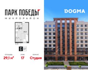 Срок сдачи: 4 кв. 2025, общей площадью 29.1 кв.м., на 17 этаже.