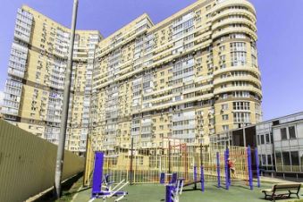 Дом с отличным местоположением и благоустроенной придомовой территорией. Современные и безопасные детские площадки.