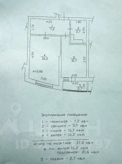 Площадь квартиры по выписке из ЕГРН - 38 м2