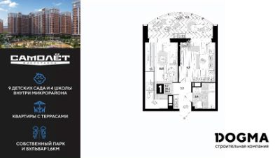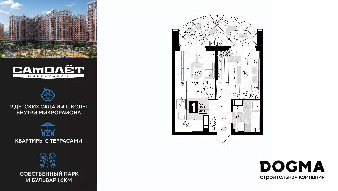 В продаже 1-комнатная квартира от застройщика! Мкр. "Самолет" 5 очередь, г. Краснодар, Литер 25  Срок сдачи: 2 кв. 2024, общей площадью 39.5 кв.м., на 16 этаже.