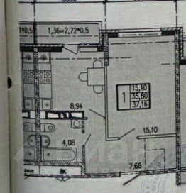 • Площадь квартиры 38 квм. Функциональная планировка : кухня правильной формы с выходом на лоджию, гостиная 17 кв.м с большим витражным окном, санузел 4, 4 кв.м, просторная прихожая 7 кв.м