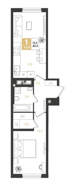 Продаётся 1-комнатная квартира в строящемся доме (Литер 2), срок сдачи: II-кв. 2028, общей площадью 42.4 кв.м., на 8 этаже. Новый жилой комплекс "Самолёт-7" от застройщика "DOGMA" расположен по адресу Краснодарский край, Город Краснодар.