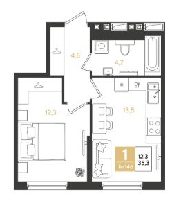 Продаётся 1-комнатная квартира в строящемся доме (Литер 2), срок сдачи: II-кв. 2028, общей площадью 35.3 кв.м., на 16 этаже. Новый жилой комплекс "Самолёт-7" от застройщика "DOGMA" расположен по адресу Краснодарский край, Город Краснодар.