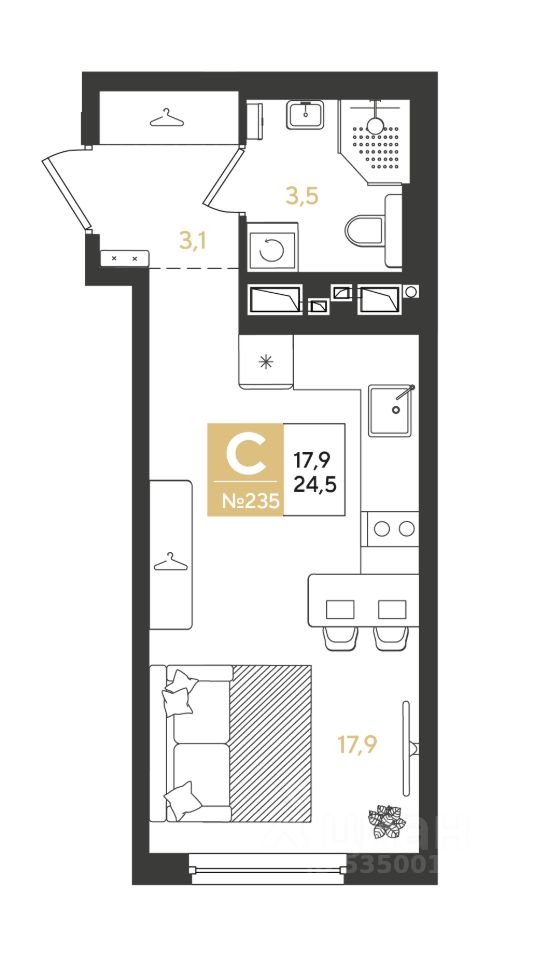 Продаётся студия в строящемся доме (Литер 2), срок сдачи: II-кв. 2028, общей площадью 24.5 кв.м., на 3 этаже. Новый жилой комплекс "Самолёт-7" от застройщика "DOGMA" расположен по адресу Краснодарский край, Город Краснодар.