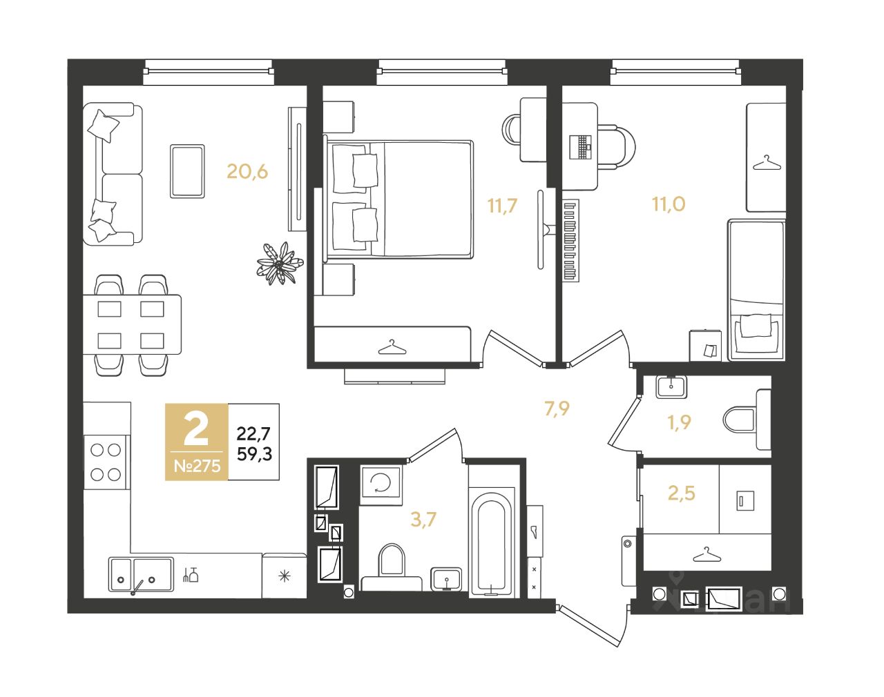 Продаётся 2-комнатная квартира в строящемся доме (Литер 2), срок сдачи: II-кв. 2028, общей площадью 59.3 кв.м., на 8 этаже. Новый жилой комплекс "Самолёт-7" от застройщика "DOGMA" расположен по адресу Краснодарский край, Город Краснодар.