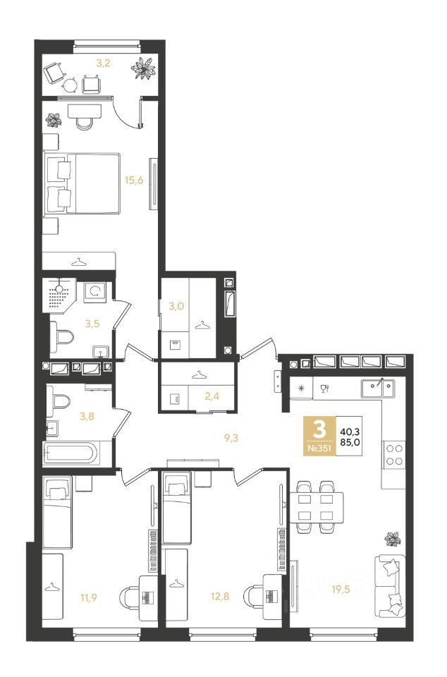 Продаётся 3-комнатная квартира в строящемся доме (Литер 2), срок сдачи: II-кв. 2028, общей площадью 85 кв.м., на 9 этаже. Новый жилой комплекс "Самолёт-7" от застройщика "DOGMA" расположен по адресу Краснодарский край, Город Краснодар.