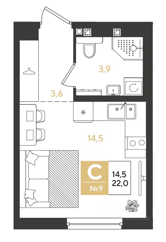 Студия, 22 м²