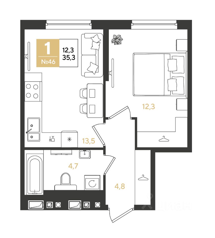 Продаётся 1-комнатная квартира в строящемся доме (Литер 1), срок сдачи: II-кв. 2028, общей площадью 35.3 кв.м., на 6 этаже. Новый жилой комплекс "Самолёт-7" от застройщика "DOGMA" расположен по адресу Краснодарский край, Город Краснодар.