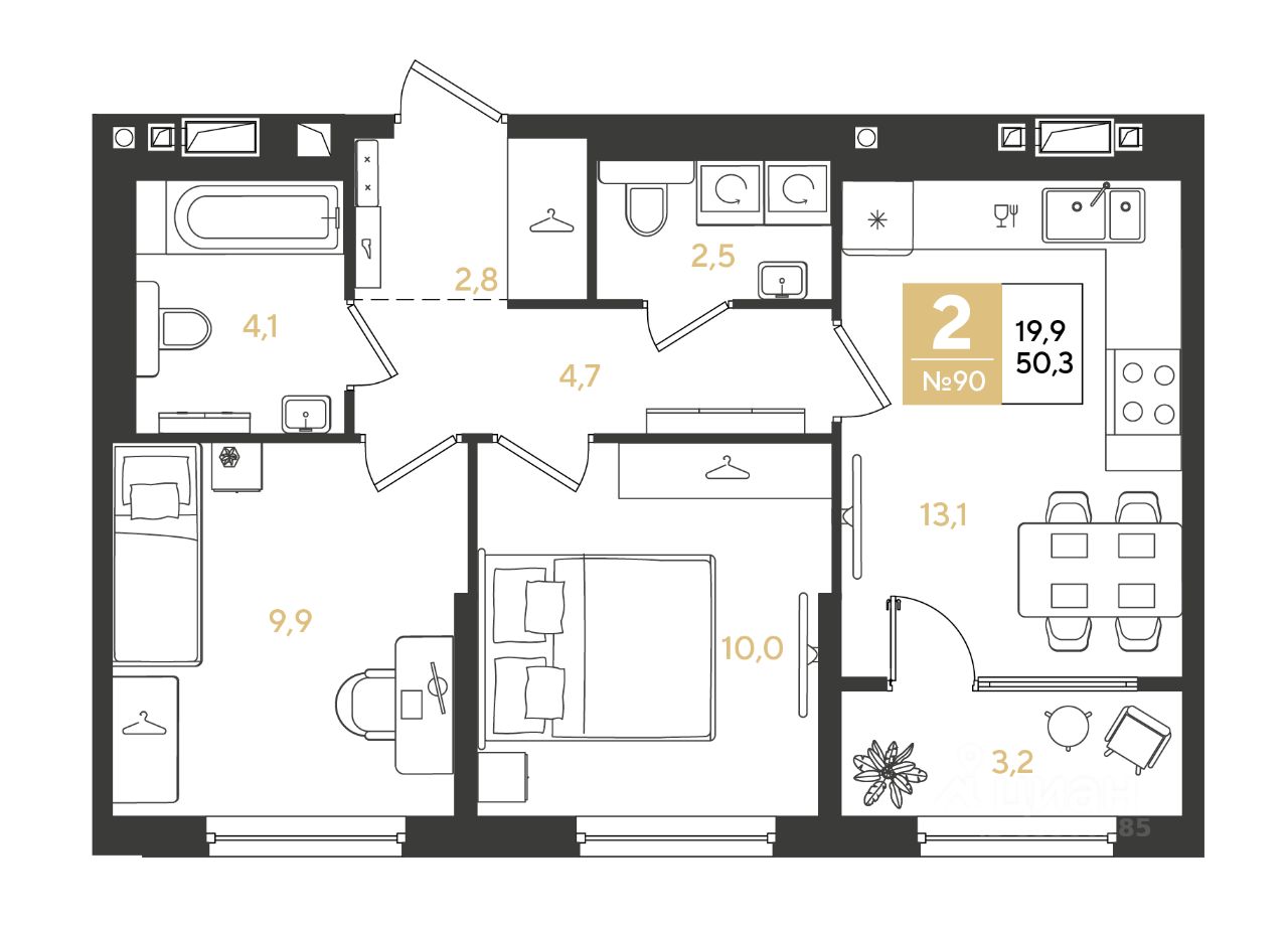 Продаётся 2-комнатная квартира в строящемся доме (Литер 1), срок сдачи: II-кв. 2028, общей площадью 50.3 кв.м., на 10 этаже. Новый жилой комплекс "Самолёт-7" от застройщика "DOGMA" расположен по адресу Краснодарский край, Город Краснодар.