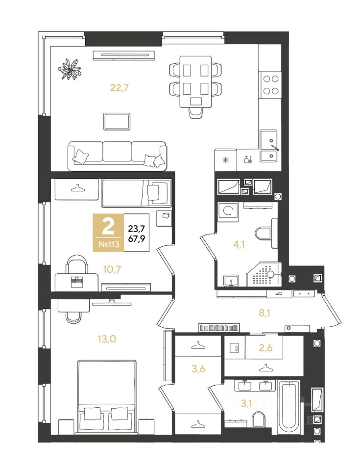 Продаётся 2-комнатная квартира в строящемся доме (Литер 1), срок сдачи: II-кв. 2028, общей площадью 67.9 кв.м., на 13 этаже. Новый жилой комплекс "Самолёт-7" от застройщика "DOGMA" расположен по адресу Краснодарский край, Город Краснодар.
