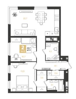 2-комн. квартира, 67,9 м²
