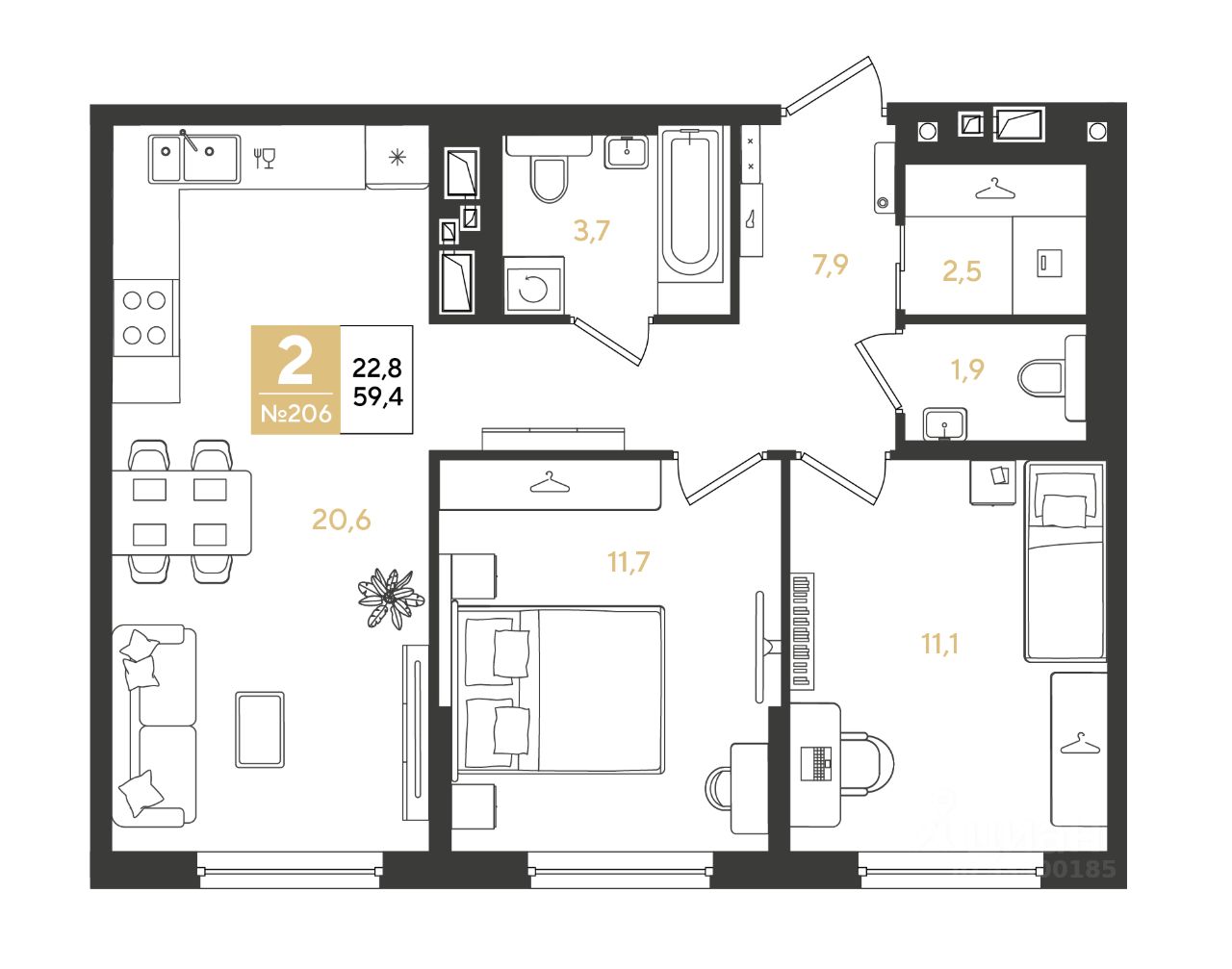 Продаётся 2-комнатная квартира в строящемся доме (Литер 1), срок сдачи: II-кв. 2028, общей площадью 59.4 кв.м., на 7 этаже. Новый жилой комплекс "Самолёт-7" от застройщика "DOGMA" расположен по адресу Краснодарский край, Город Краснодар.