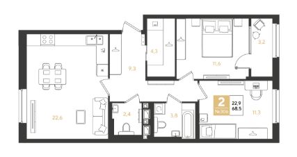 Продаётся 2-комнатная квартира в строящемся доме (Литер 1), срок сдачи: II-кв. 2028, общей площадью 68.5 кв.м., на 7 этаже. Новый жилой комплекс "Самолёт-7" от застройщика "DOGMA" расположен по адресу Краснодарский край, Город Краснодар.