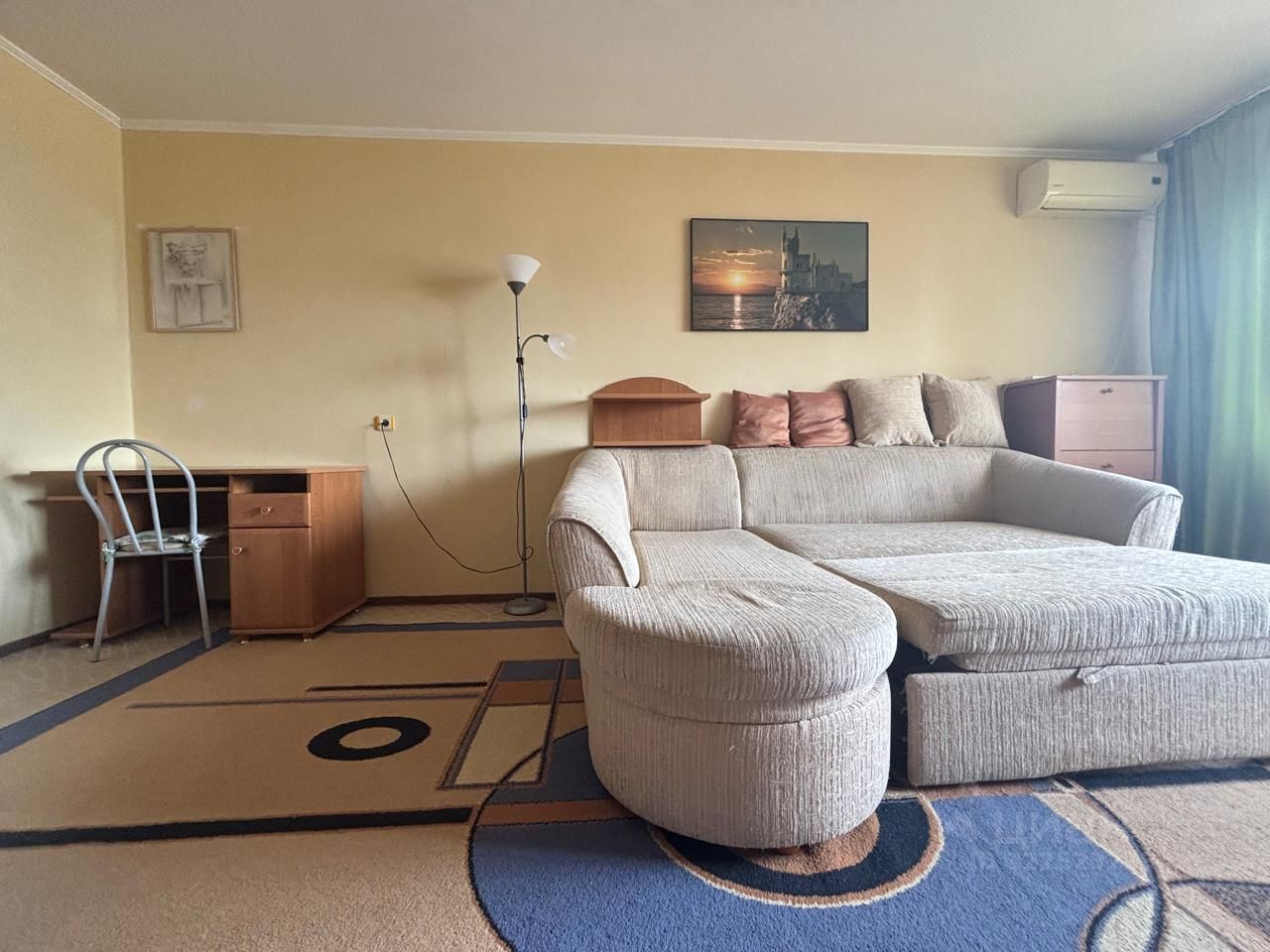 В комнате: мягкий уголок, корпусная мебель, сплит-система.