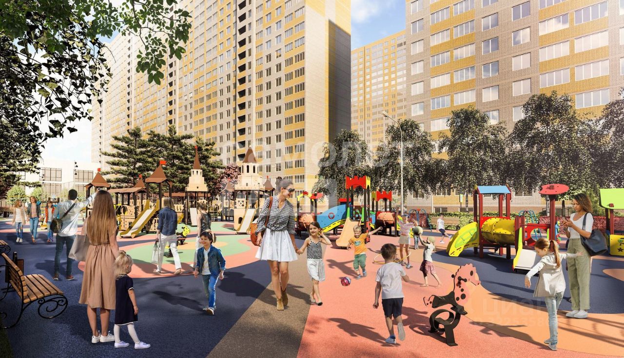 Представьте себе прекрасный двор, где есть всё для комфортной жизни. Здесь много зелени, свежий воздух и удобные места для отдыха. Для детей оборудованы современные игровые площадки, где они смогут весело проводить время. А для взрослых установлены уютные деревянные скамейки в тени деревьев — идеальное место, чтобы отдохнуть вечером после работы.