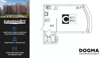 DOGMA - ТОП-3 застройщик по объему строительства в РФ. "САМОЛЁТ" — концептуальный жилой микрорайон, который расположен на северо-западе Краснодара, в районе Западного Обхода. Квартал спроектирован как "город в городе", поэтому здесь будет всё для комфортной жизни: современные дома с разными планировками, дороги, школы и детские сады, поликлиника, торговые центры, парки и аллеи. Микрорайон находится далеко от промышленных предприятий, сочетает удобство городской жизни и экологически благоприятную среду. Инфраструктура нового микрорайона: • 4 школы и 9 детских садов на территории микрорайона • Функциональные планировки • Собственный бульвар протяжённостью 1,6км • Светомузыкальный фонтан протяжённостью 55 метров • Амфитеатр • Парк 7 ГА • Скейт-парк • Детская аква-площадка • Круглосуточное видеонаблюдение и пост охраны Приобрести квартиру можно одним из способов: ипотека, рассрочка, наличный расчет.