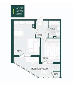 В продаже стильная 1 комнатная квартира с большой кухней -гостинной 19.78 м2