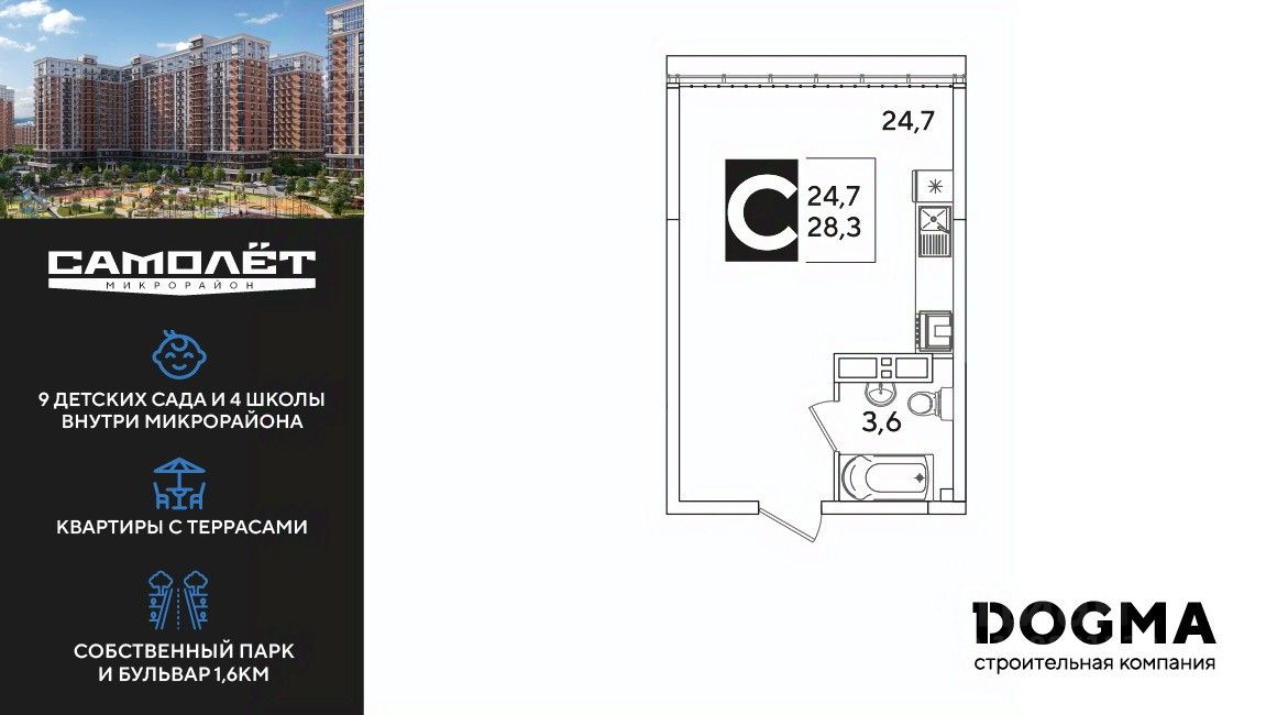 DOGMA - ТОП-3 застройщик по объему строительства в РФ. "САМОЛЁТ" — концептуальный жилой микрорайон, который расположен на северо-западе Краснодара, в районе Западного Обхода. Квартал спроектирован как "город в городе", поэтому здесь будет всё для комфортной жизни: современные дома с разными планировками, дороги, школы и детские сады, поликлиника, торговые центры, парки и аллеи. Микрорайон находится далеко от промышленных предприятий, сочетает удобство городской жизни и экологически благоприятную среду. Инфраструктура нового микрорайона: • 4 школы и 9 детских садов на территории микрорайона • Функциональные планировки • Собственный бульвар протяжённостью 1,6км • Светомузыкальный фонтан протяжённостью 55 метров • Амфитеатр • Парк 7 ГА • Скейт-парк • Детская аква-площадка • Круглосуточное видеонаблюдение и пост охраны Приобрести квартиру можно одним из способов: ипотека, рассрочка, наличный расчет.