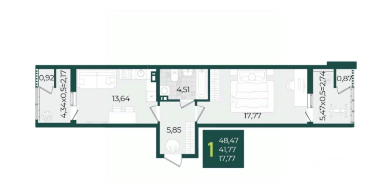 Две просторные лоджи 4.40 м2 и 5.47 м2 станут отличным местом для отдыха, создания зимнего сада или уютного уголка для работы. Они прекрасно освещены и остеклены