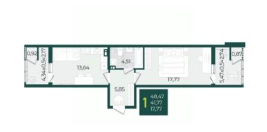 В продаже стильная 1 комнатная квартира , планировка на две стороны, с большой кухней - гостинной