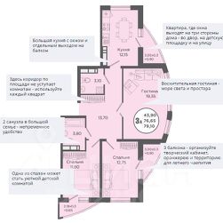 > Эта светлая квартира идеально подойдет для большой семьи или тех, кто ценит комфорт и удобство. Просторные комнаты, продуманная планировка создают атмосферу уюта и гармонии.