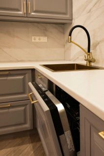 Просторная и светлая кухня, создающая уют и комфорт, с современным ремонтом и качественной мебелью и техникой.