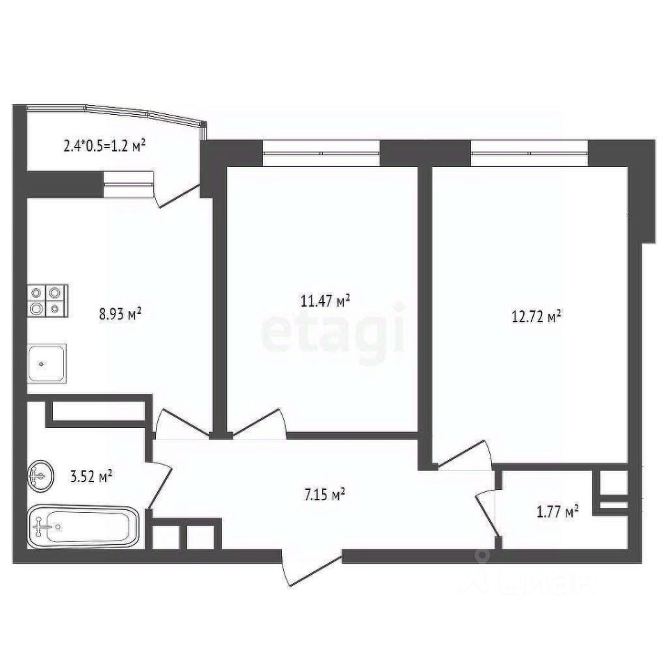 Площадь квартиры 44,9 + лоджия 2,5 м2. Отличная удобная планировка. Можно реализовать как евро-2, так и полноценную 2-к квартиру. Просторная прихожая 7,15 м2, раздельный санузел, кухня 9,0 м2( с выходом на лоджию) и две комнаты 11,47 м2 и 12,72 м2.