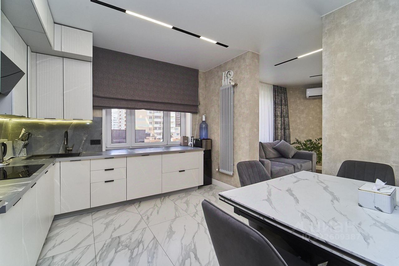 Планировка квартиры на три стороны света. Квартира очень светлая, теплая, просторная. В каждой комнате установлена сплит-система. Дорогой кухонный гарнитур со встроенной техникой, посудомоечная машина, трековые светильники! Сан.узлы раздельные. Установлен бойлер. Много зон хранения, очень лаконично смотрятся, вся мебель из качественных материалов.