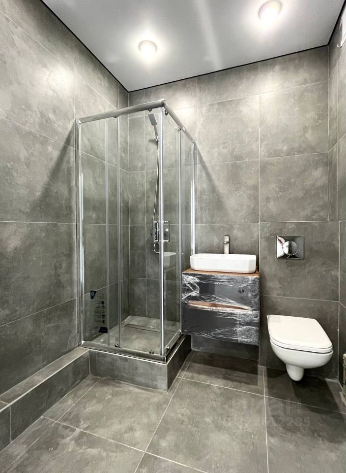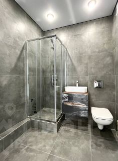 О ремонте: в сан узле удобная инсталляция, декоративная тумба, тропический душ, мощный полотенцесушитель и зеркало с подсветкой.