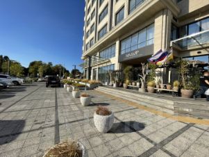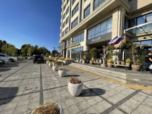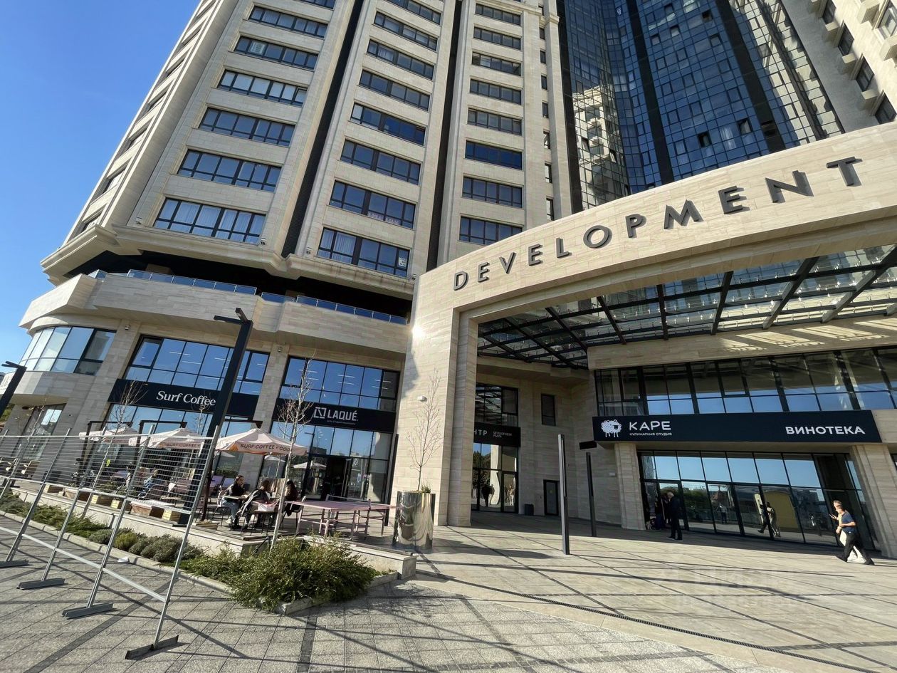 На первом этаже ресторан, кофейня, бизнес-центр, модные магазины одежды.