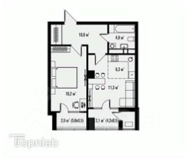 Это 1комнатная квартира 50м2, или по-современному, формат евро-2, где есть большая кухня-гостиная, которую легко можно зонировать. Есть также две лоджии, сплит-рум. Высота потолков 3,6м, окна в пол, идеальная предчистовая отделка.