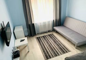 • Светлая комната с большим окном, двуспальным ортопедическим матрасом и уютным диваном.