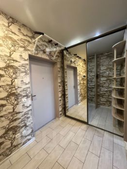 Кухонный гарнитур оснащён всей необходимой техникой. На просторной лоджии можно устроить зону отдыха или рабочее место. В прихожей оборудована большая гардеробная, где поместится вся ваша одежда, а также можно разместить на хранение всевозможные коробки.