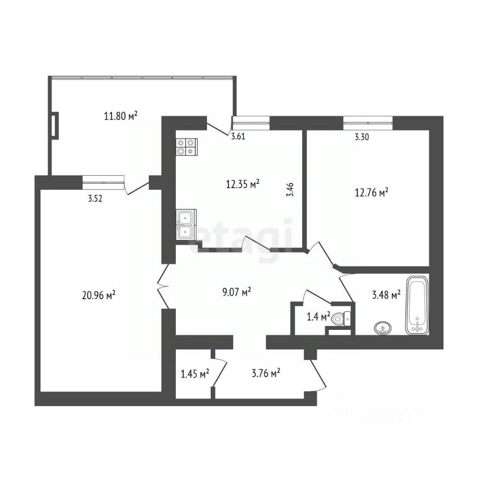 Продается просторная двухкомнатная квартира общей площадью 69,4 кв.м. плюс балкон 11,8 кв.м. в микрорайоне Черемушки.