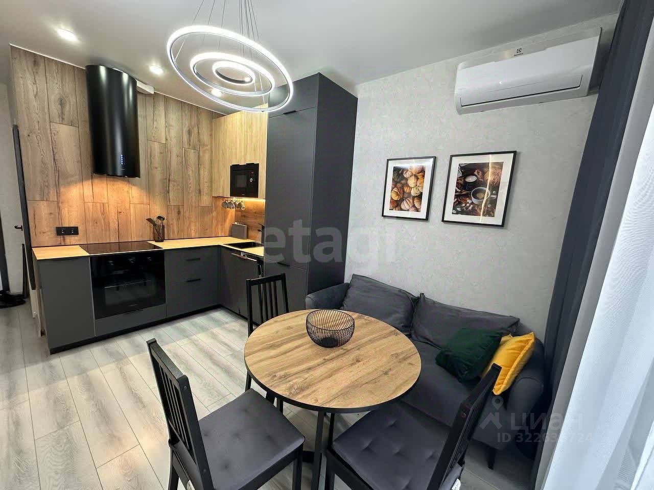 Кухня-гостиная оформлена с учетом всех современных тенденций, здесь грамотно расположена мебель, а также установлена вся необходимая встроенная техника, что делает её удобной для приготовления пищи и уютных встреч с друзьями.