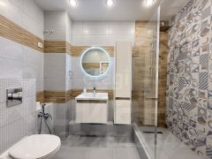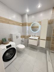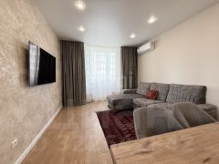 • Дизайнерский ремонт: Квартира выполнена в современном стиле с использованием высококачественных материалов от лучших производителей (Лазурит, диван Ру, София).
