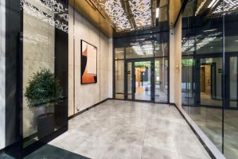 -9 этаж, вид в закрытый дизайнерский двор-парк (стилобат)