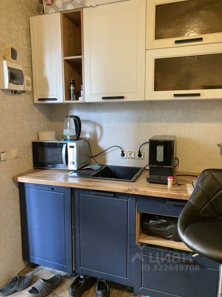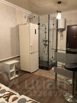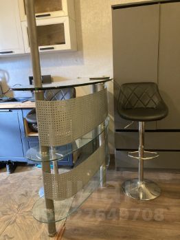 Комната со свежим ремонтом и мебелью, пол керамогранит. Стильная душевая кабина, кухня в комнате с барной стойкой и стульчиками, раскладной диван, сплит, телевизор, стиральная машина автомат.