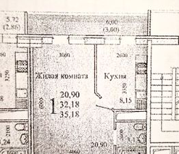 Общая площадь квартиры - 38,7 м2 (из них 6 м2 балкон):