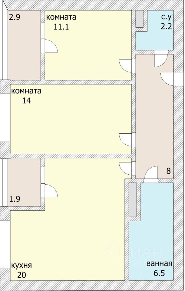 такая планировка позволяет без перепланировки сделать однокомнатную квартиру и студию. Есть место под хорошую гардеробную. Просторные комнаты, балкон, гостевой санузел.