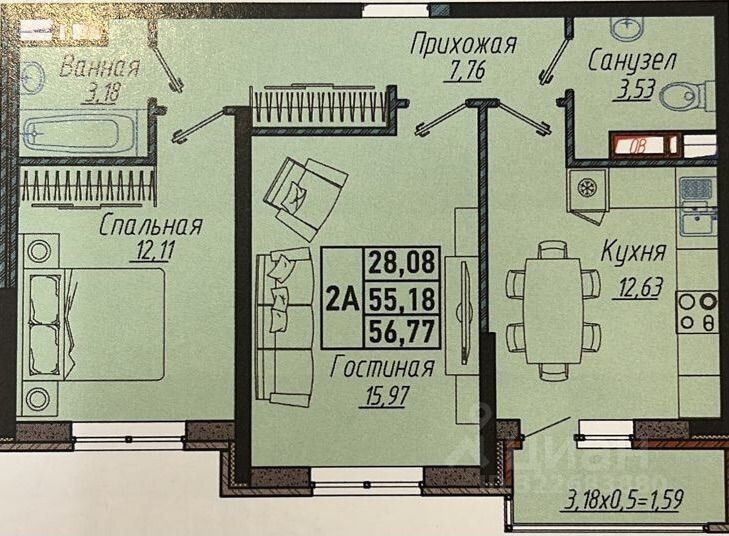 2-кoмнатнaя квapтирa в ЖK "Облака" — уют и комфoрт для вaшей ceмьи!