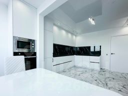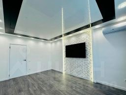 Квартира имеет продуманную планировку: две просторные комнаты и кухню площадью 19 квадратных метров. Окна выходят на две стороны, есть две застеклённые и утеплённые лоджии. В квартире установлены тёплые полы. В квартире выполнен дизайнерский ремонт. Две отдельные спальни и кухня полностью оборудованы всей необходимой бытовой техникой: холодильник, морозильная камера, варочная панель, духовка, посудомоечная машина, микроволновая печь, стиральная машина, два телевизора, система кондиционирования. Также в квартире есть полы с подогревом на кухне, в ванной и коридоре.